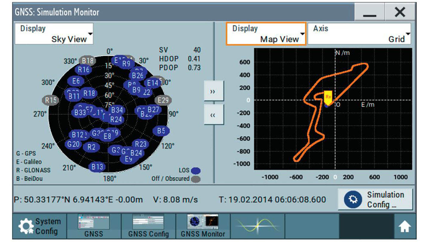 R&S®SMBV100B可配备多种GNSS选件,使仪器成为可靠、功能齐全的GNSS模拟器。凭借其模拟能力,现实和复杂但可重复的全球导航卫星系统方案可以在受控条件下运行。