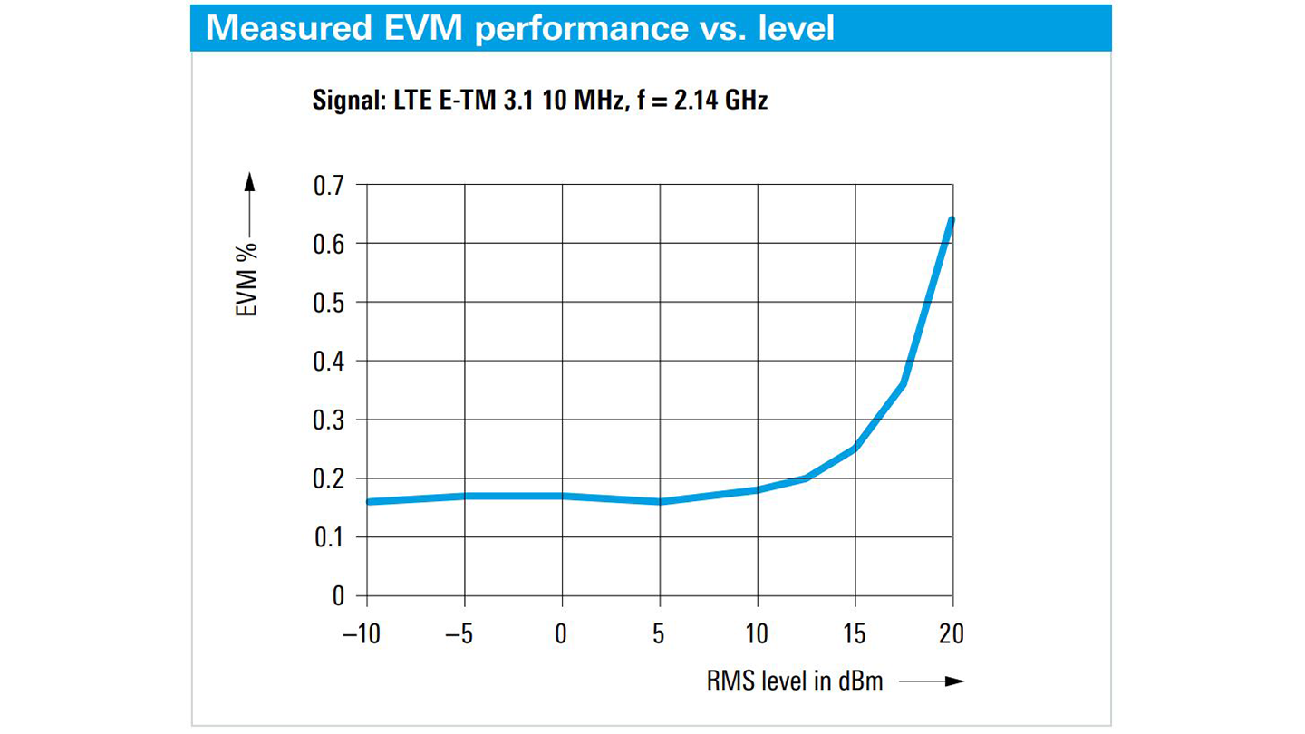 对于20 MHz LTE信号,即使在高输出功率水平下,EVM性能也达到0.2%。